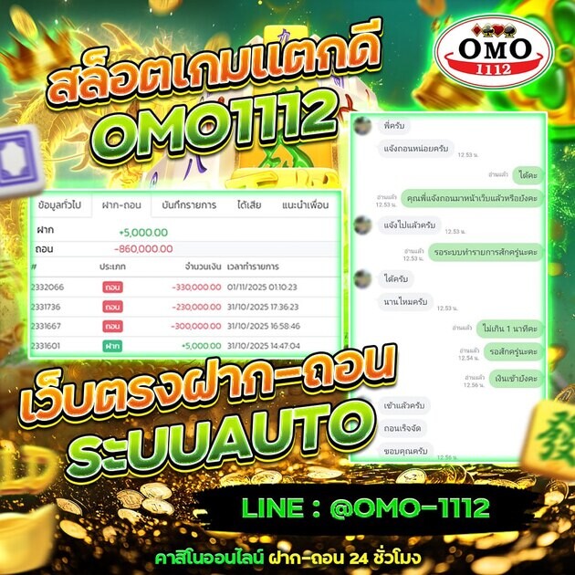 รีวิวยอดถอน OMO1112 แตกจริง ถอนได้ทุกยอด
